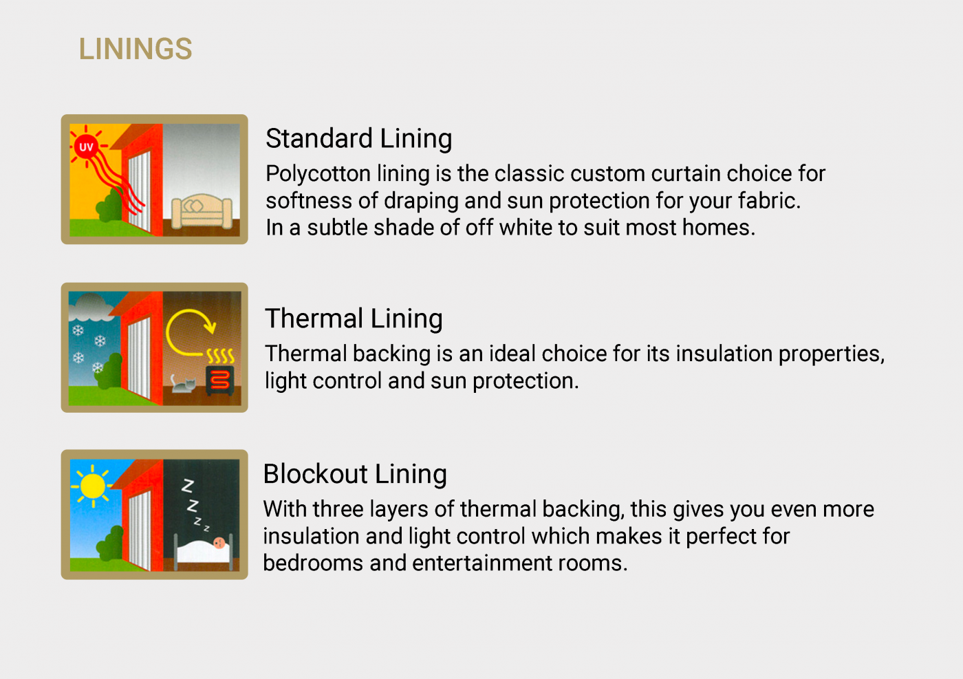 Available with different heading styles and lining options to suit the most discerning buyer. Curtains are a great choice for full length windows and doors.